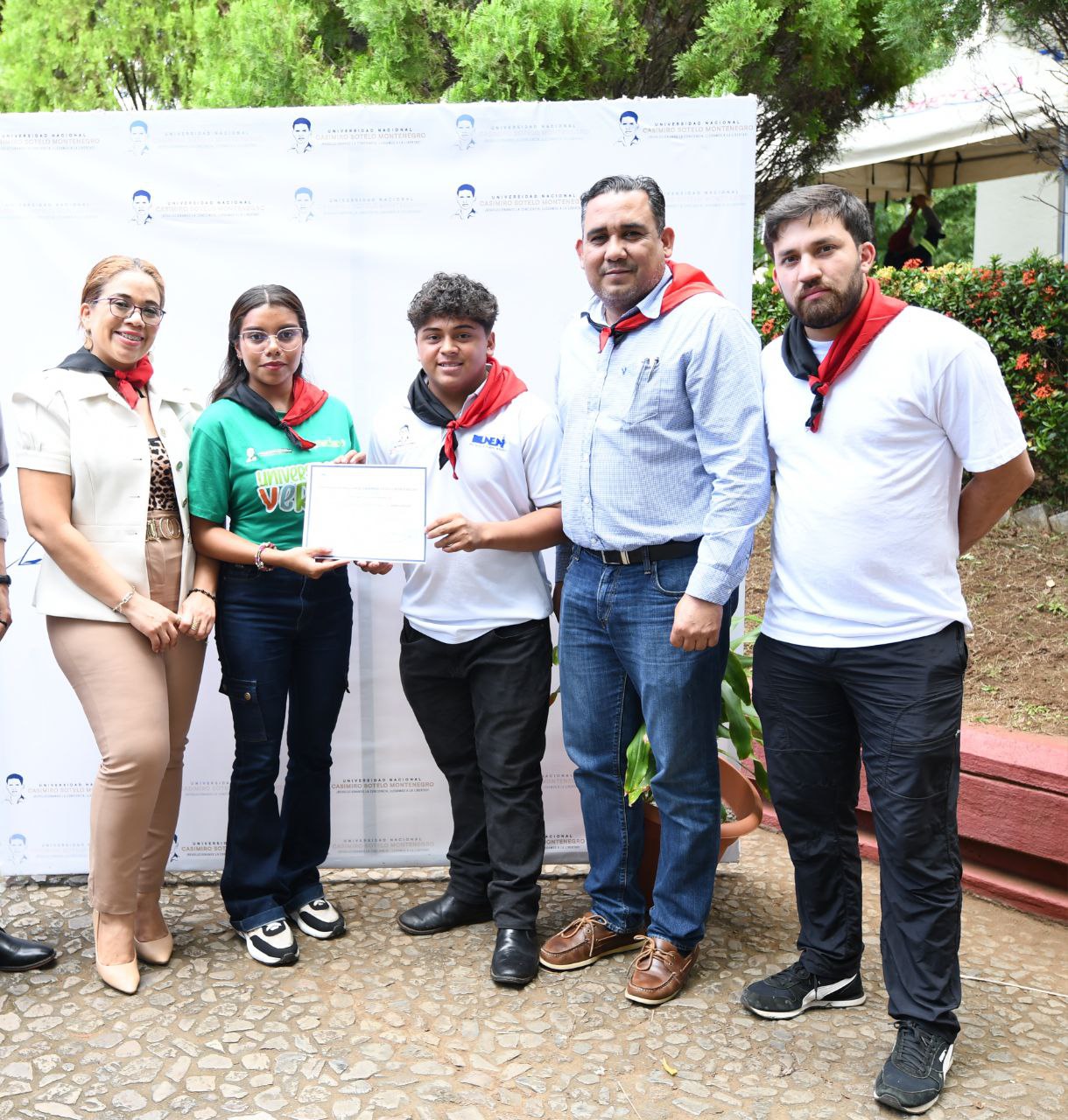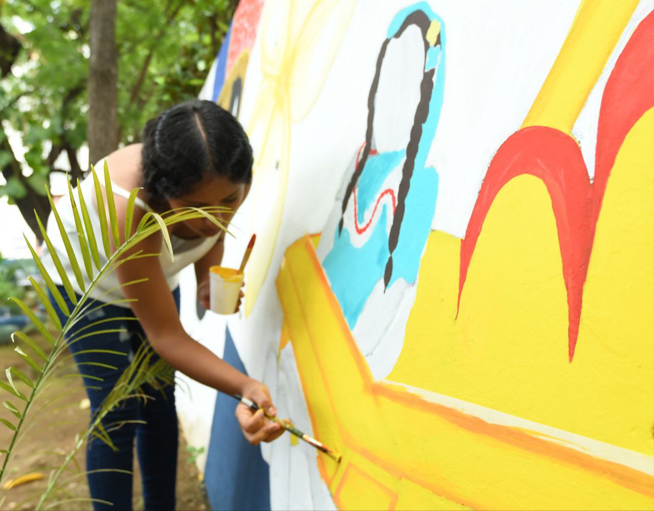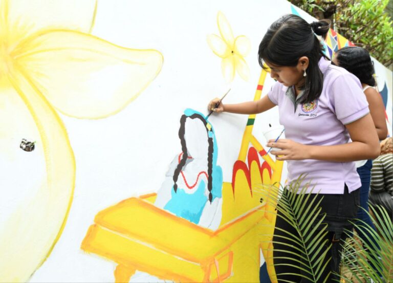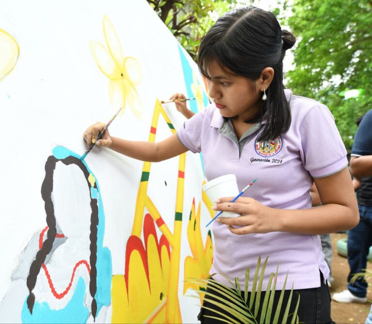 El mural, ubicado en el parque contiguo al Auditorio General Miguel Ángel Ortez, fue elaborado por estudiantes y docentes de la carrera de Diseño Gráfico, mientras que el embellecimiento del parquecito estuvo a cargo de la Brigada Ambiental de UNEN-UNCSM y la Unidad de Victoria Arlen Siu, demostrando trabajo colaborativo, compromiso ambiental y sentido de pertenencia institucional.