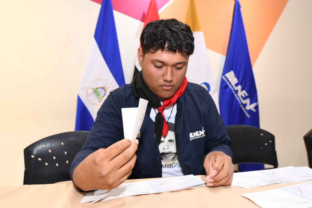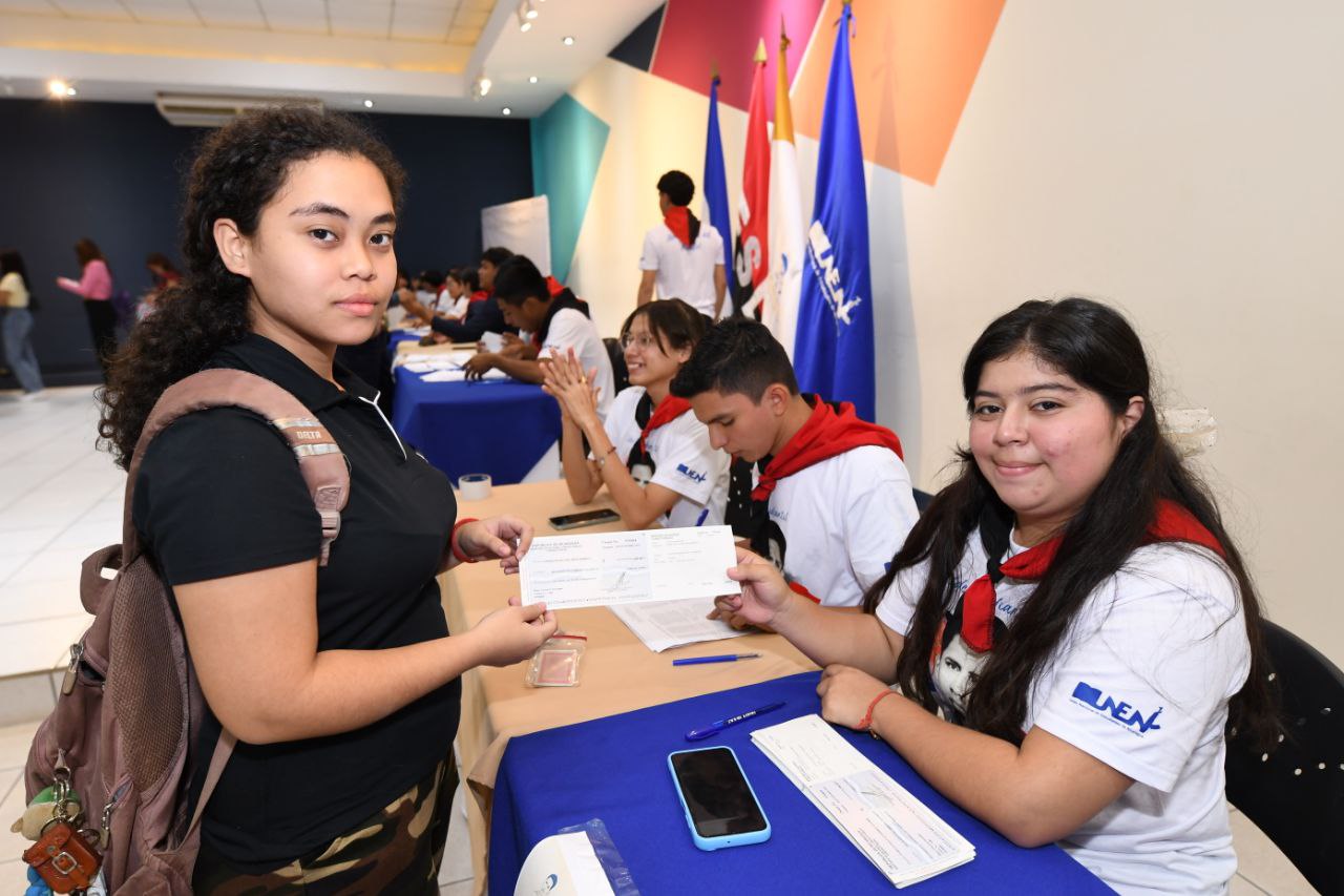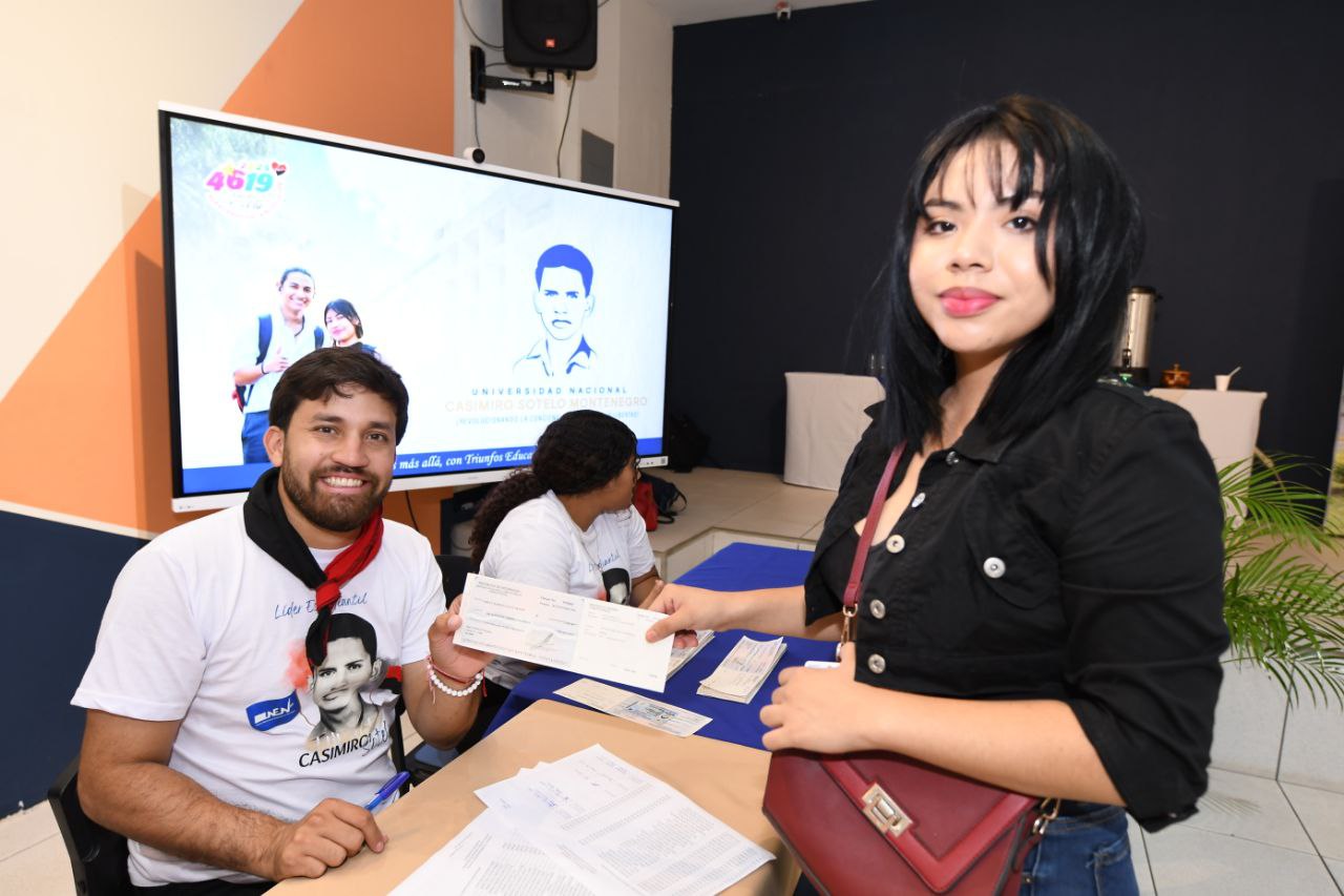 Con entusiasmo y orgullo, las y los estudiantes de la Universidad Nacional Casimiro Sotelo Montenegro celebran la entrega de Becas para el Pueblo, que fortalece la profesionalización de la juventud nicaragüense, asegurando la continuidad de sus estudios y su acceso a una educación integral, gratuita, y de calidad.