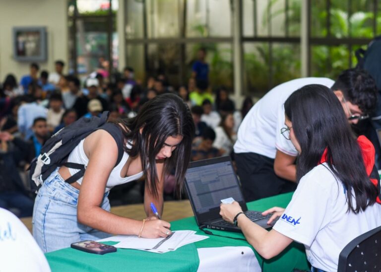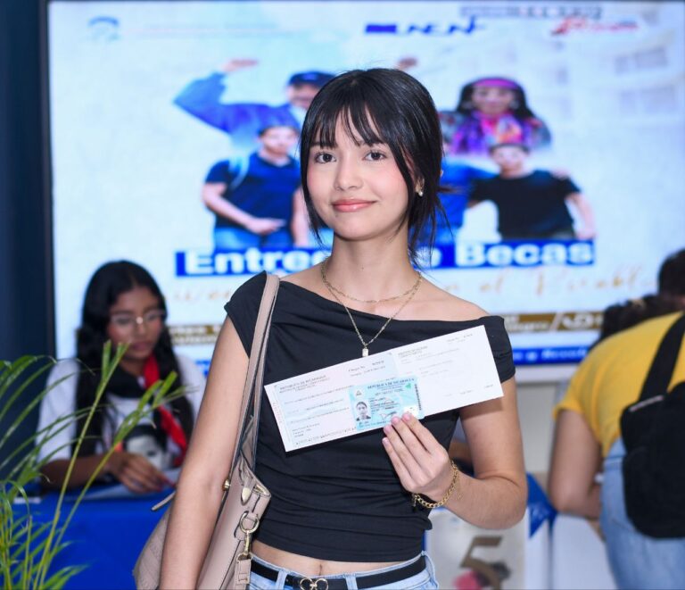 Desde el Auditorio Neysi Ríos, estudiantes de la modalidad regular y por encuentro, recibieron con alegría su beca, lo que les permitirá continuar sus estudios superiores y alcanzar sus metas, y convertirse en profesionales al servicio del pueblo nicaragüense.