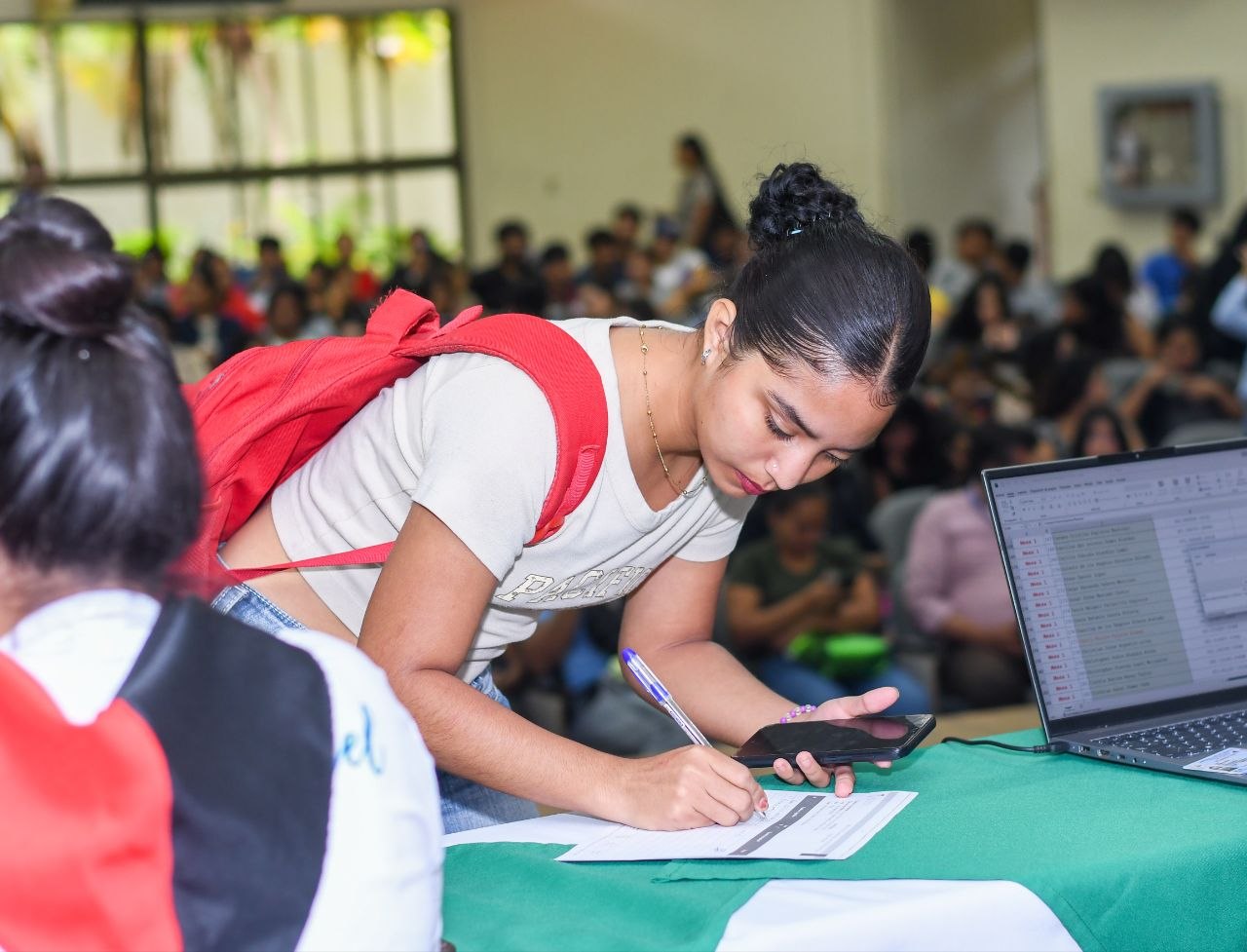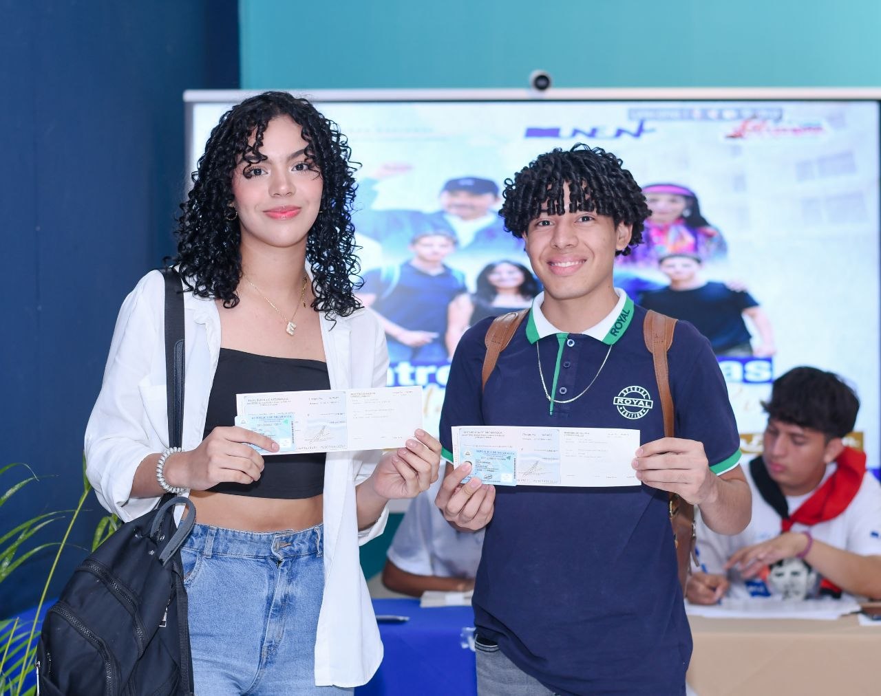 Desde el Auditorio Neysi Ríos, estudiantes de la modalidad regular y por encuentro, recibieron con alegría su beca, lo que les permitirá continuar sus estudios superiores y alcanzar sus metas, y convertirse en profesionales al servicio del pueblo nicaragüense.
